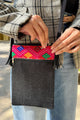 A phone and money pouch with delicate, multi-coloured hand embroidery.